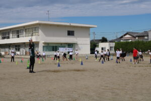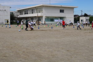 サッカーをあまりやったことのない生徒さんも多いとのことで、ボールに慣れるためにだるまさんが転んだをサッカーボールを使って行うといった、遊び感覚で取り組んでもらう内容をメインに行っていただきました!