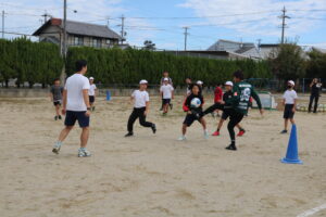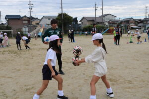 そしてその後は、実際にミニゲームを行いました。私が驚いたことは、生徒の皆さんが非常にパワフルで、とてもサッカーが上手なことです!キレのあるドリブルや的確なパスをたくさん出したり、柏木アンバサダーに「すごい!!」と褒められていた生徒さんがとても多かったのが印象的でした。