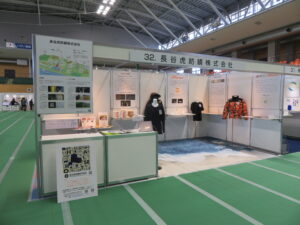 我が社も主力商品をの一つ、人口タンパク質からできた素材など環境に負荷が少ないの商品や機能性素材を中心に展示させていただきました。