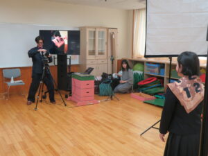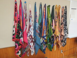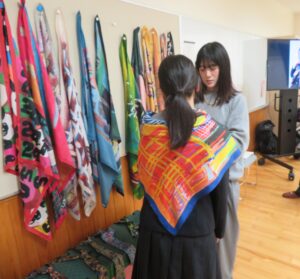 2/24(火)、実際にアートスカーフを生徒さんが身に纏い、写真撮影を行いました。
